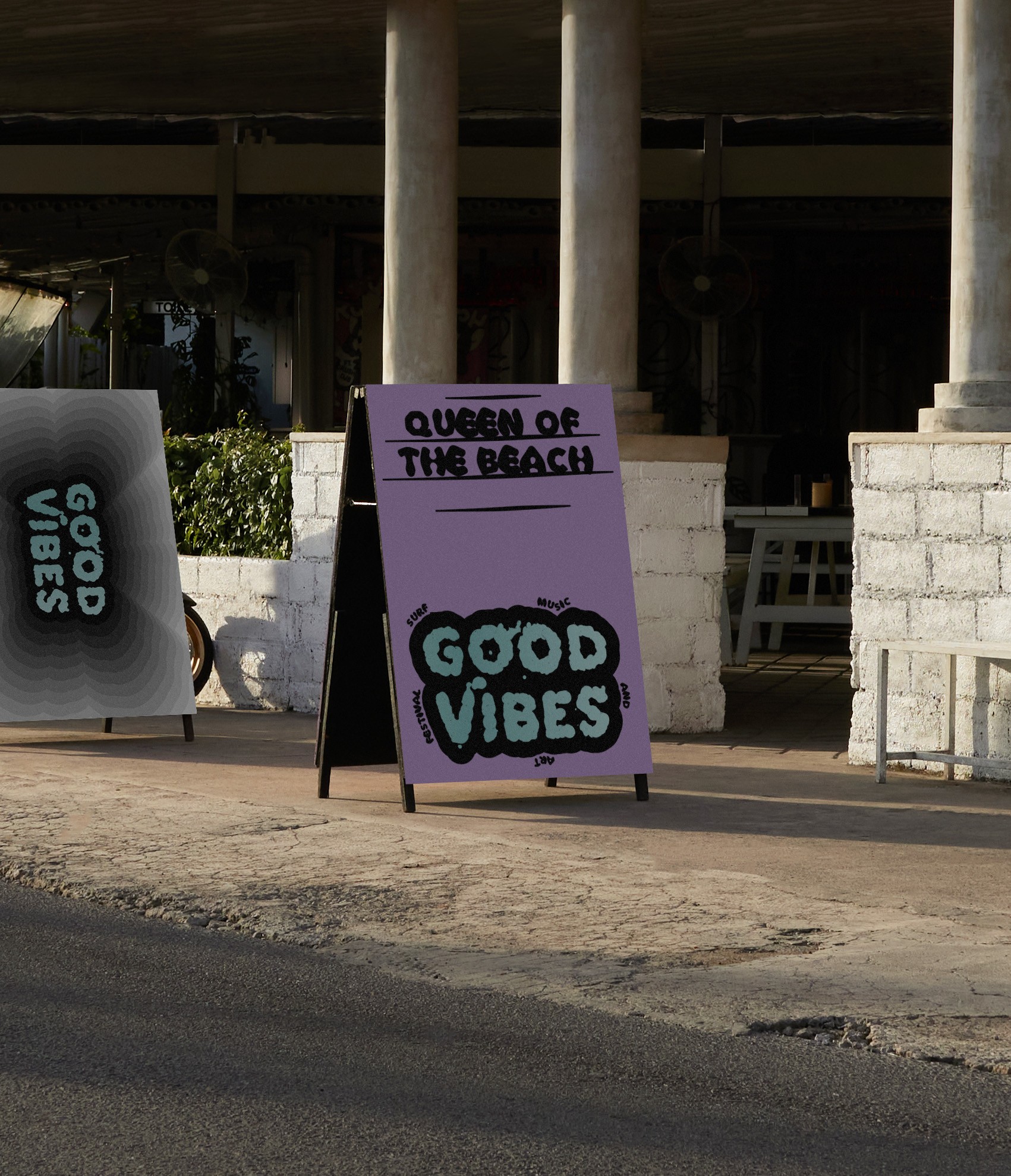 GOOD VIBES is a fictional surf, art, and music festival. I created an animated identity built around a punk-influenced DIY aesthetic, using fluid wax drips to form the logotype in motion. The visual system explores rhythm, imperfection, and analogue tactility through expressive typography and raw textures, capturing the festival’s spontaneous and rebellious spirit across motion applications.